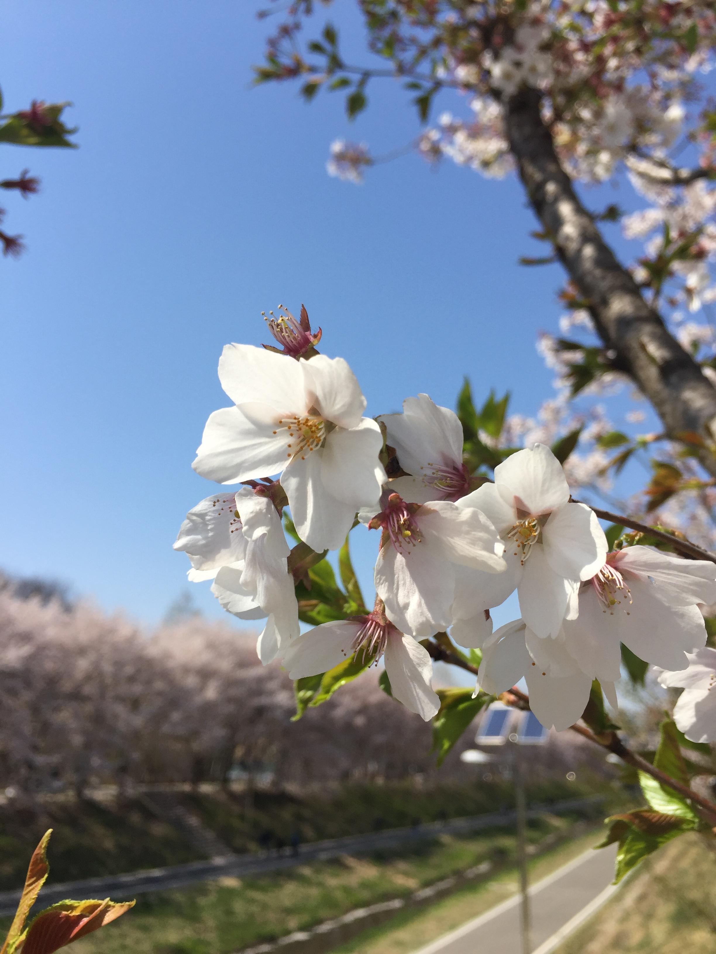 버스올 때 까지 기다리다 뒷쪽에 벚꽃이 예뻐서 핸드폰 카메라로 담아본다.